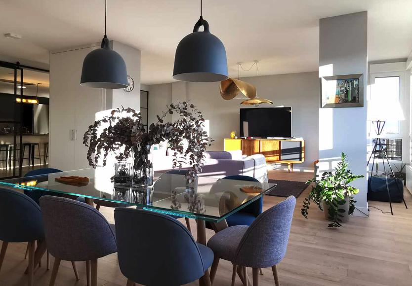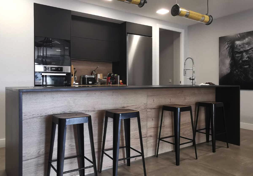 Reforma integral de una vivienda donde destaca el gran espacio creado entre salón cocina y comedor. Decoración a cargo de Loreto Mallén.
