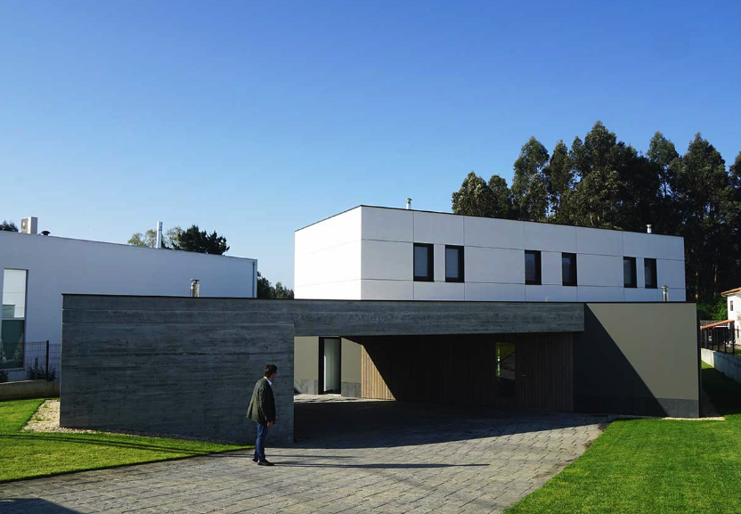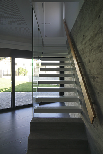 La vivienda formada por dos volúmenes se orienta según sus funciones, el volumen de abajo para mejorar la relación con la parcela y la parte de arriba para una mejor orientación. Calificación energética A.